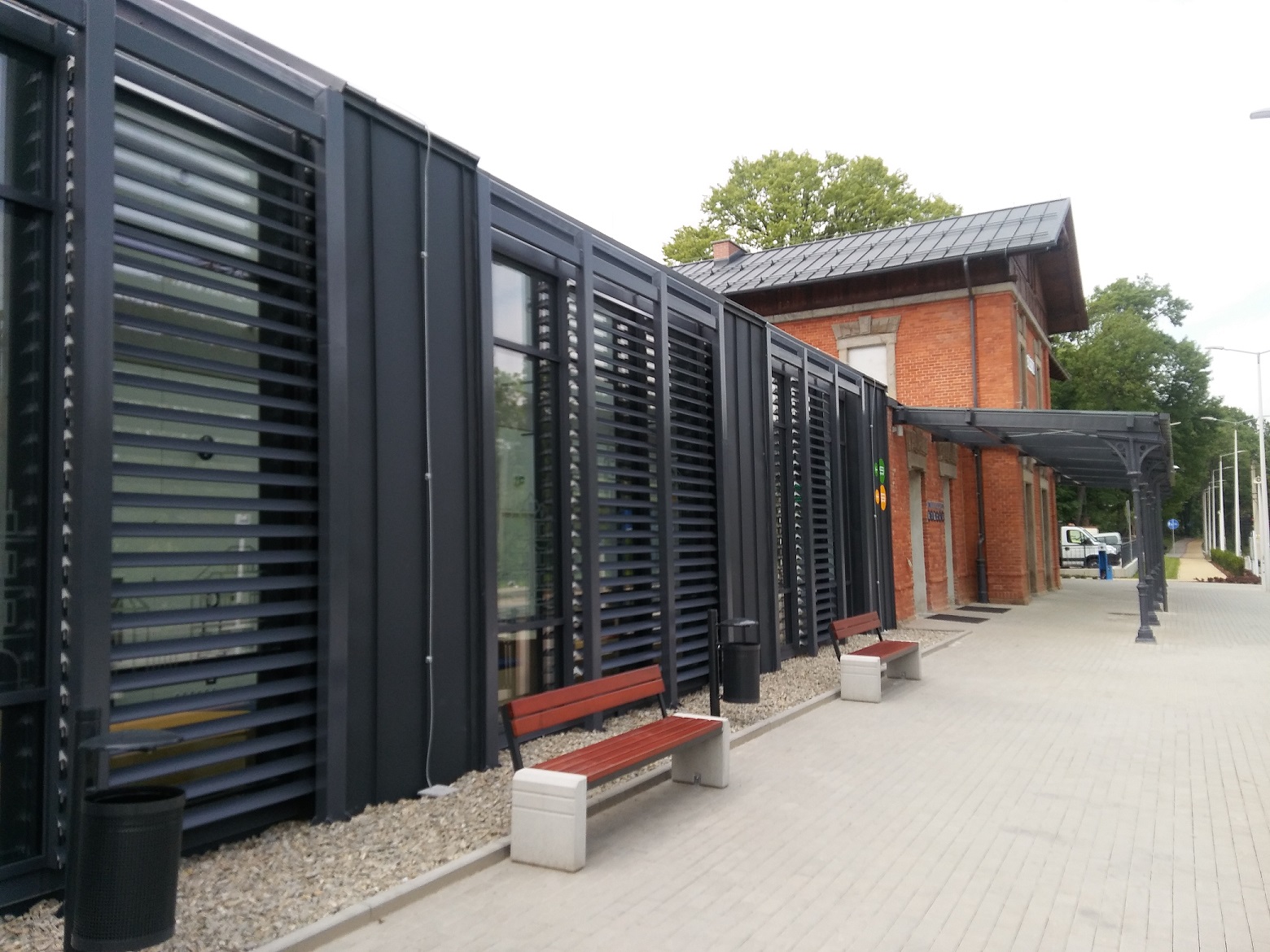 W ramach projektu wyremontowano zabytkowy budynek byłego dworca kolejowego (koszt niekwalifikowany), w miejscu wyburzonej parterowej części dworca wybudowano nowy budynek (dostosowany do korzystania przez osoby niepełnosprawne), w którym zlokalizowane zostały wszystkie funkcje niezbędne do obsługi podróżnych.